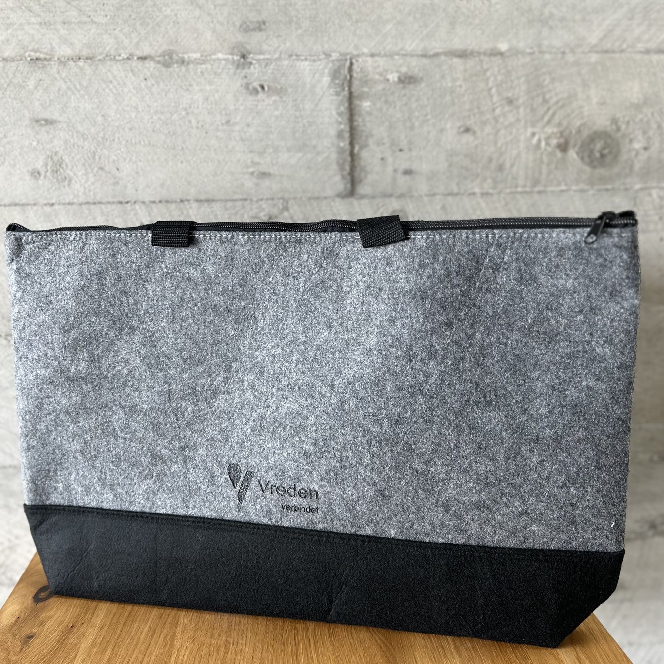 Stilvoll und praktisch: Die geräumige Filztasche mit Reißverschluss und stabilen Henkeln ist ideal für Einkauf, Alltag oder Ausflug.